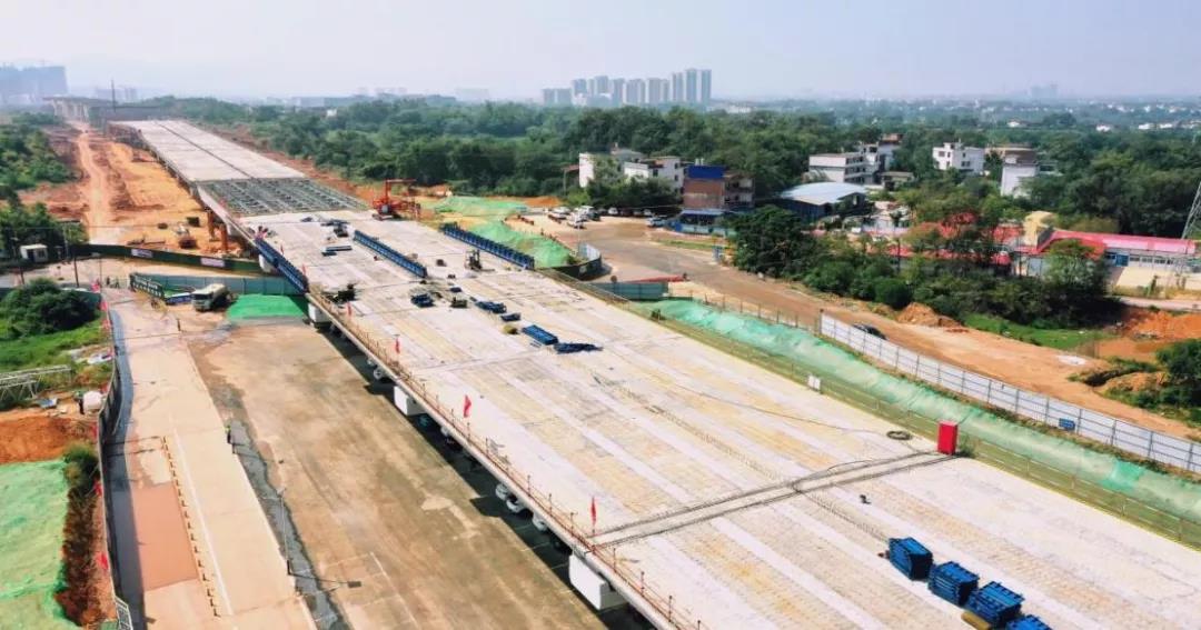 蓉江三路快速路(含地下綜合管廊)項目作為“四橫六縱”中的一條南北走向主干線,南起丁香路,北至筱壩大橋南端接地點,總投資約25.87億元,全長約5.1公里,主路為高架段城市快速路,規(guī)模為雙向6車道。項目于2020年8月1日正式開工,截至2021年11月15日,共完成總工程量的51%,其中橋梁工程完成66.2%,道路工程完成48.7%,地下綜合管廊工程完成約84.6%,預計在2022年年底完工。項目建成后,可實現(xiàn)蓉江新區(qū)、高鐵新區(qū)南北向聯(lián)系,大大提高新老城區(qū)交通服務(wù)水平,實現(xiàn)贛州交通發(fā)展水平與社會經(jīng)濟發(fā)展水平相適應。